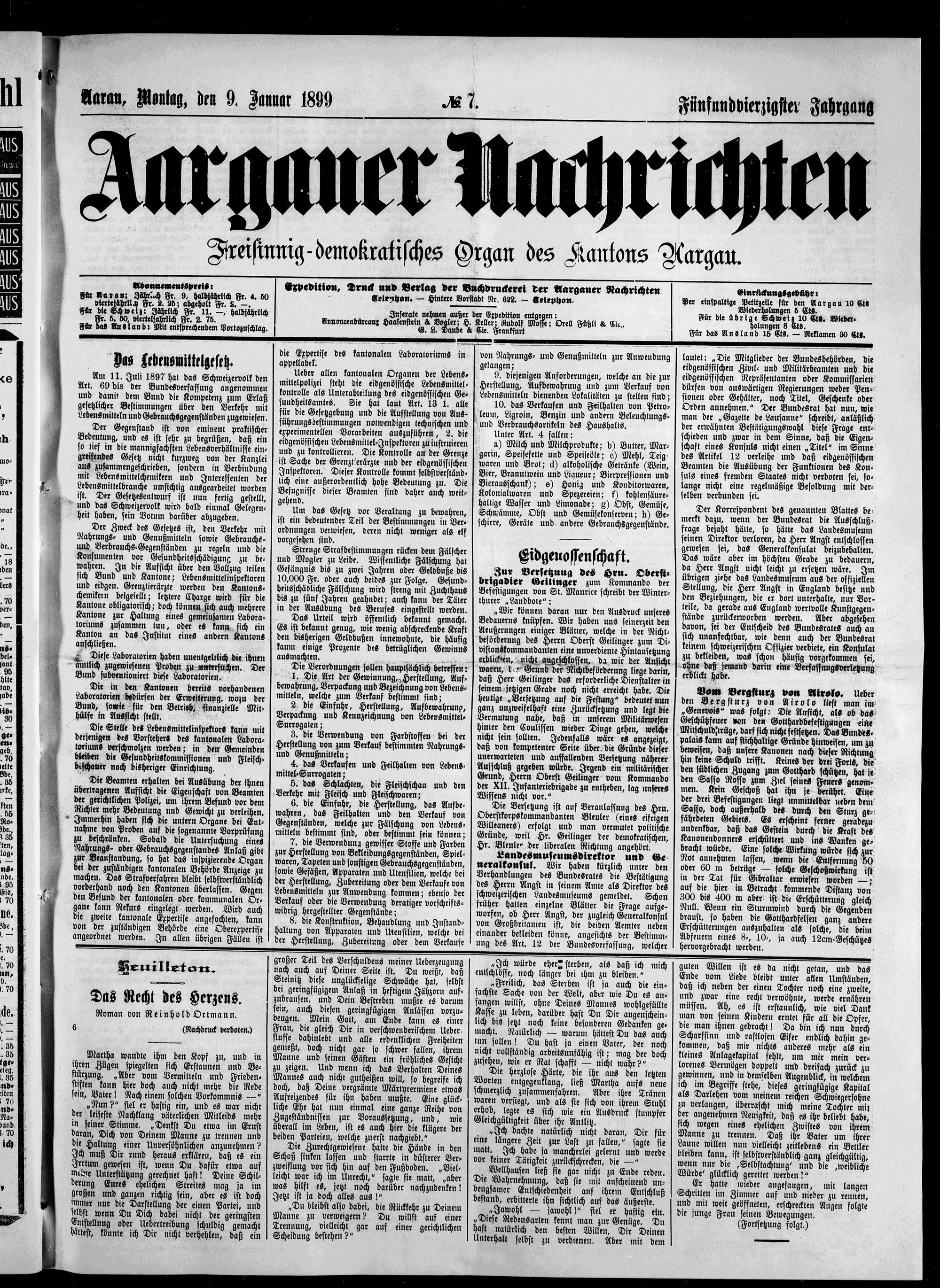 Aargauer Nachrichten : Freisinning-demokratisches Organ des Kantons Aargau