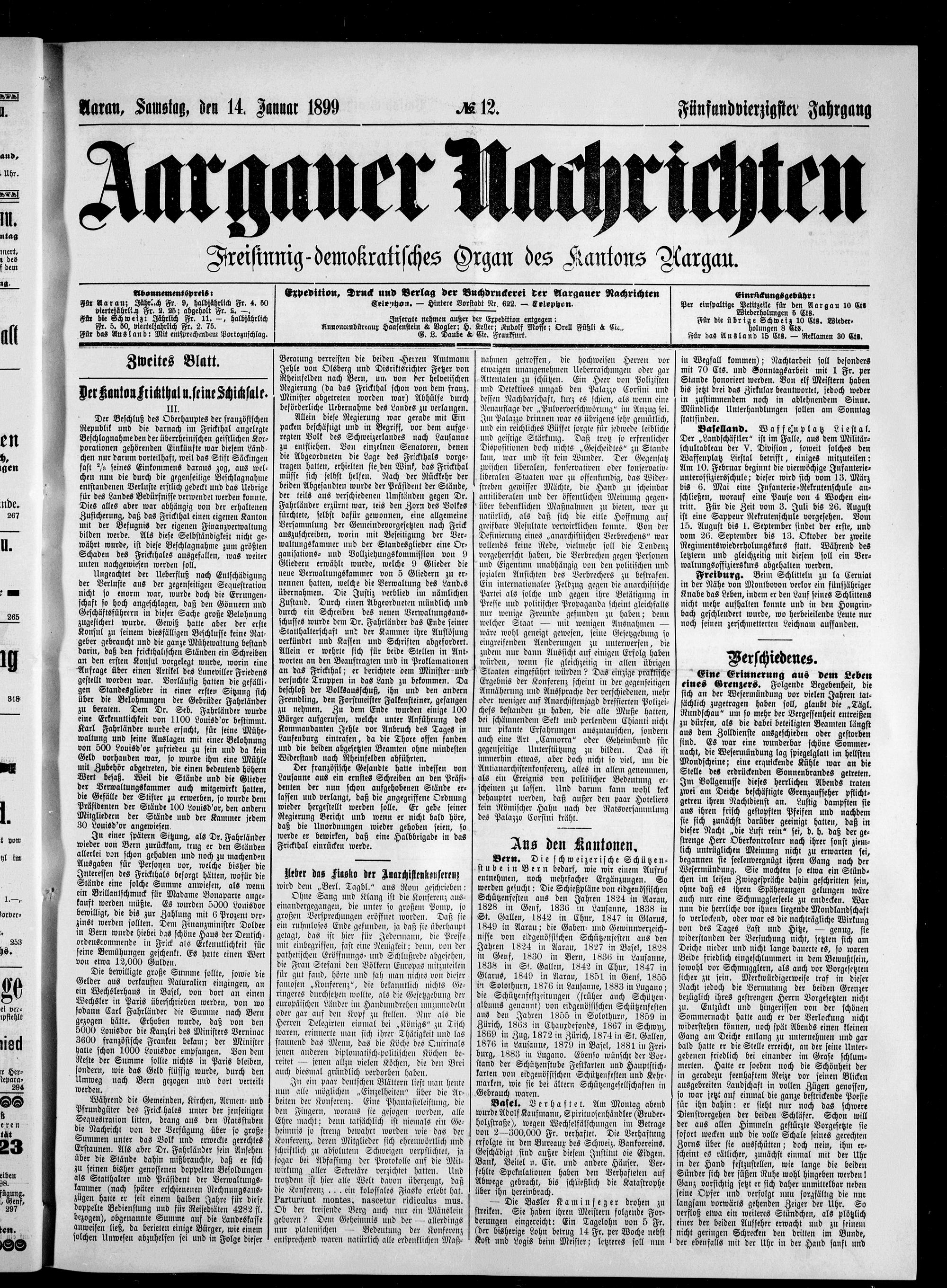Aargauer Nachrichten : Freisinning-demokratisches Organ des Kantons Aargau