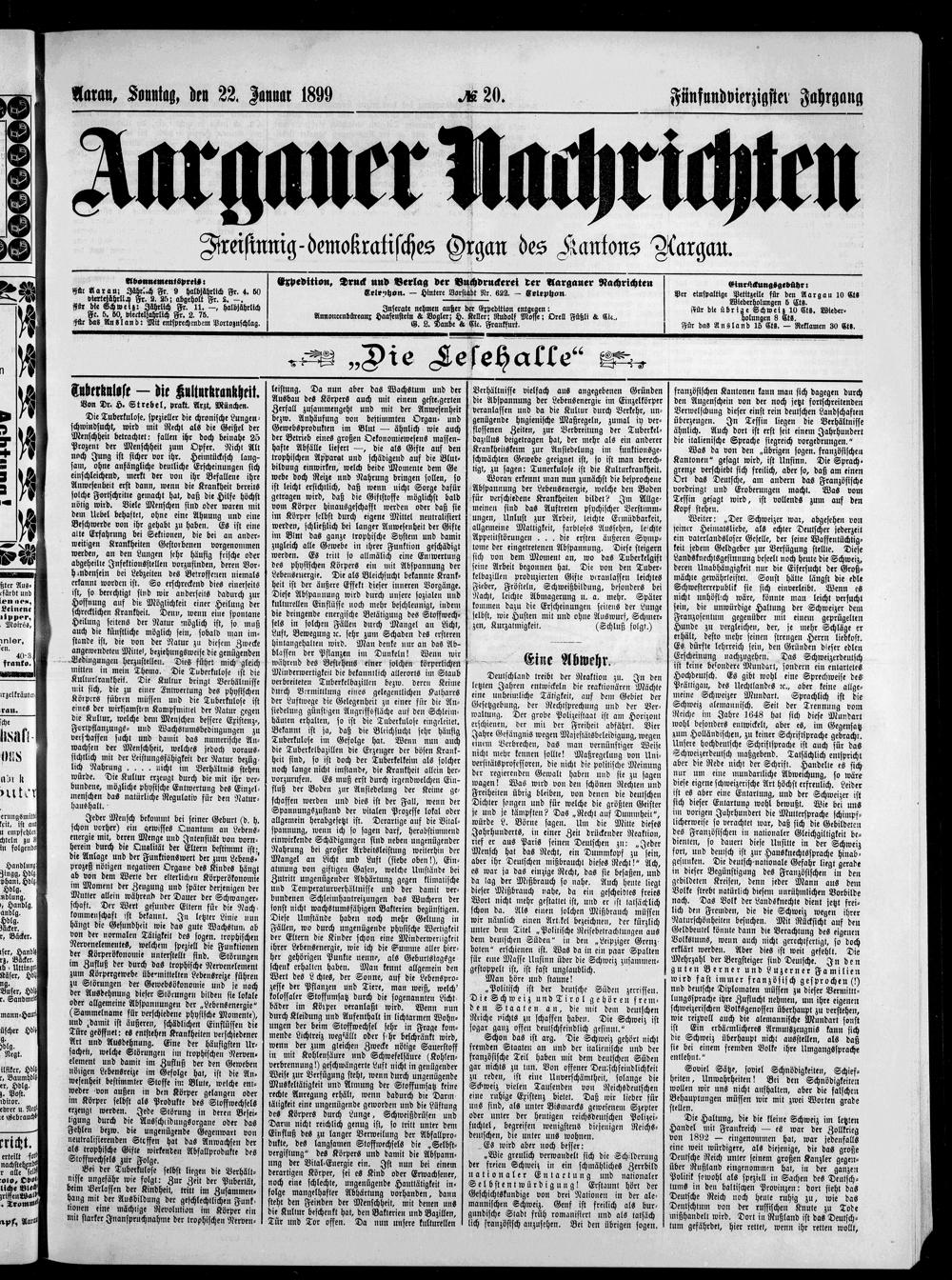 Aargauer Nachrichten : Freisinning-demokratisches Organ des Kantons Aargau
