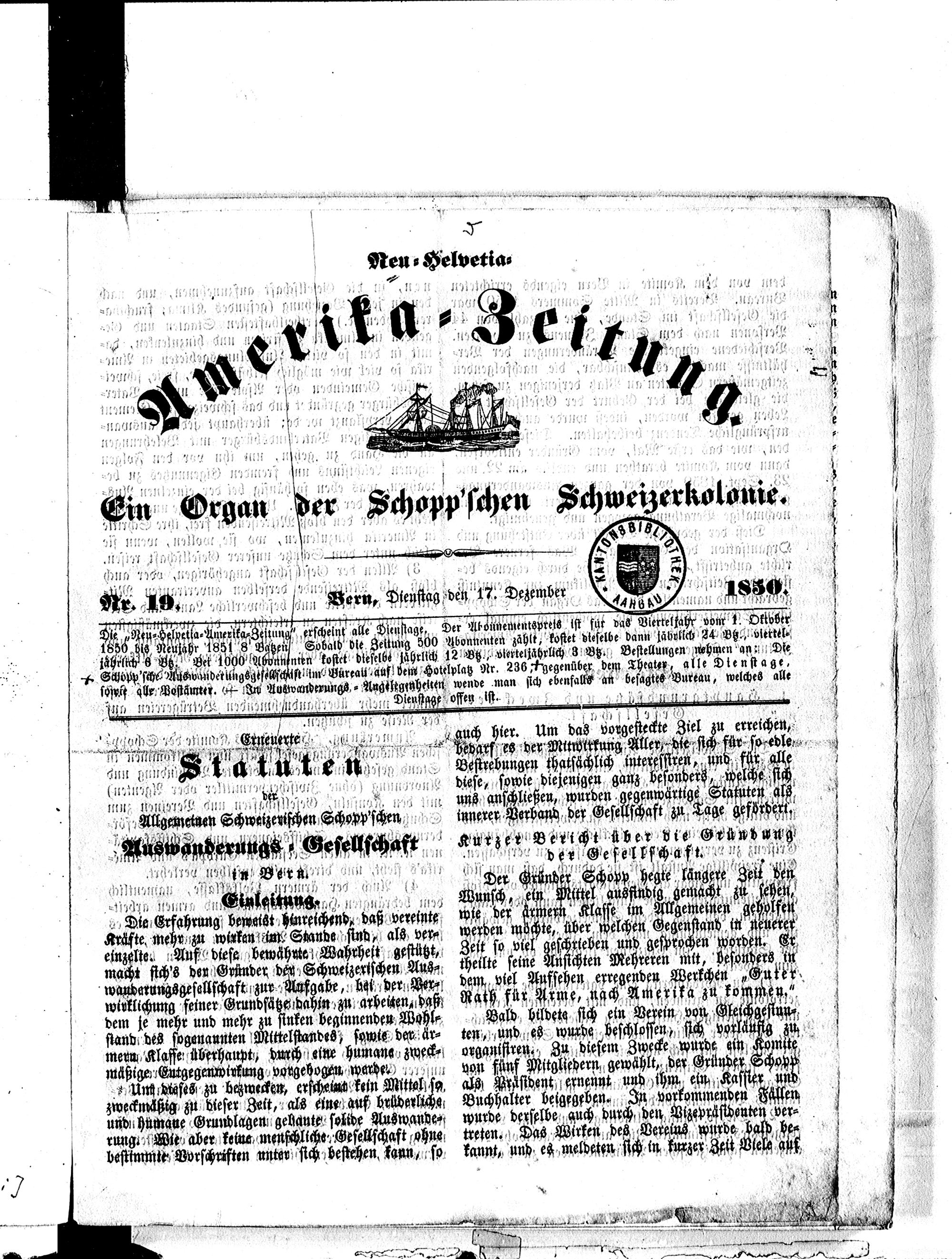 Neu-Helvetia-Amerika-Zeitung : ein Organ der Schopp'schen Schweizerkolonie