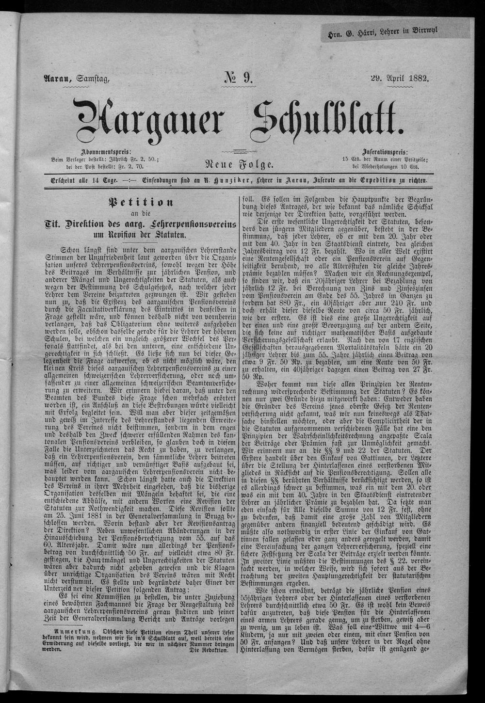 Aargauer Schulblatt : Organ für die Lehrerschaft der Kantone Aargau, Baselland & Solothurn / [Hrsg.: Aargauischer Lehrerverein, Solothurnischer Lehrerbund]