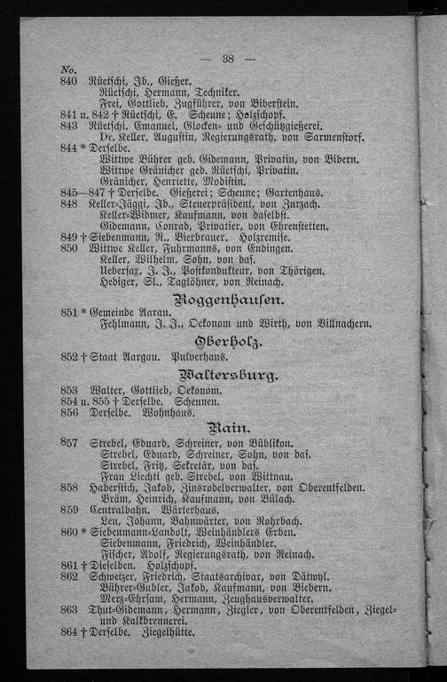 Verzeichniss sämmtlicher Einwohner, Wohn- und Oekonomie-Gebäude der Gemeinde Aarau
