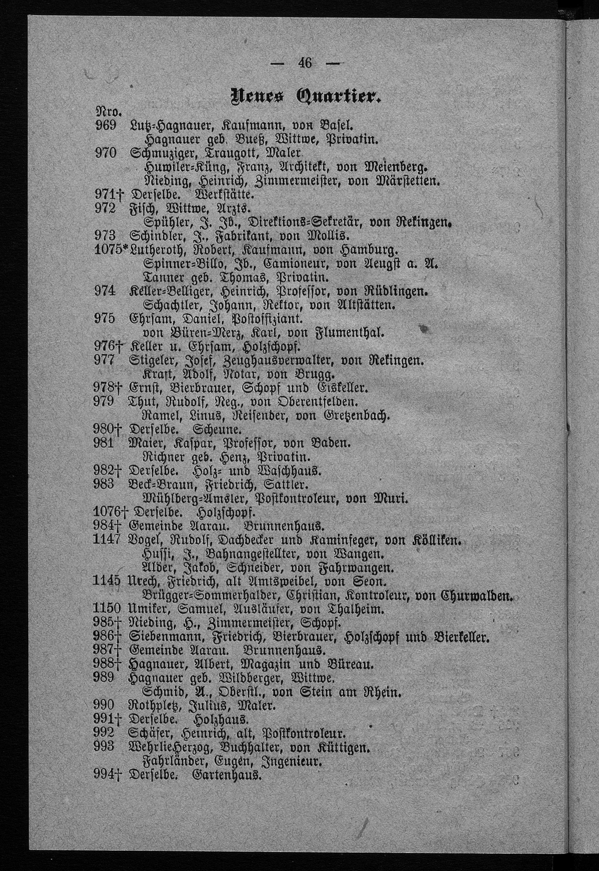 Verzeichniss sämmtlicher Einwohner, Wohn- und Oekonomie-Gebäude der Gemeinde Aarau
