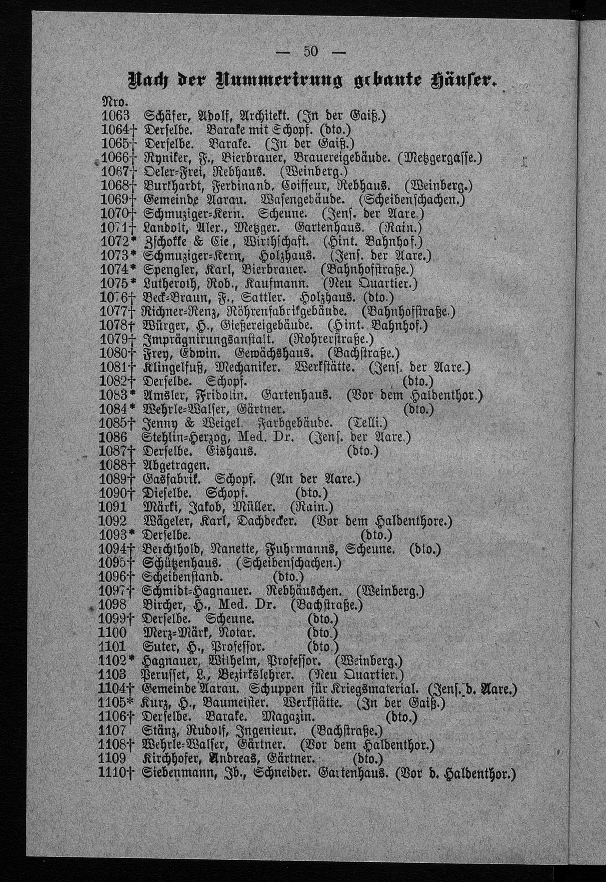 Verzeichniss sämmtlicher Einwohner, Wohn- und Oekonomie-Gebäude der Gemeinde Aarau