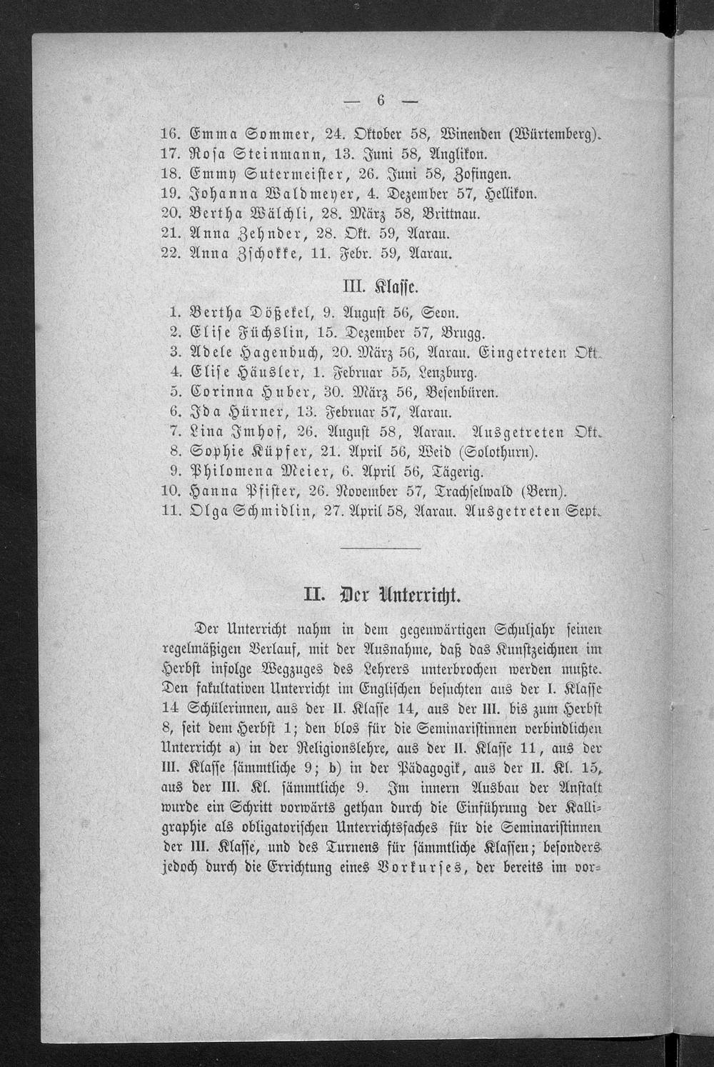 Jahresbericht über das Töchterinstitut und Lehrerinnenseminar in Aarau