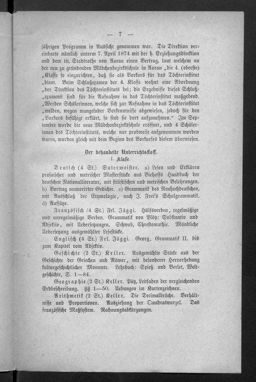 Jahresbericht über das Töchterinstitut und Lehrerinnenseminar in Aarau