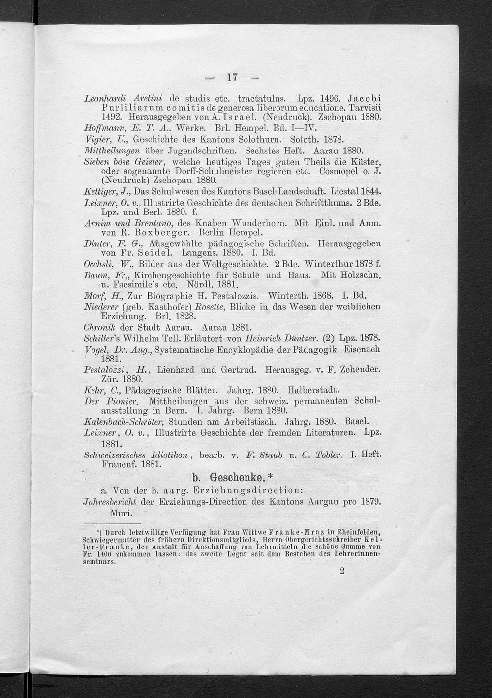 Jahresbericht über das Töchterinstitut und Lehrerinnenseminar in Aarau