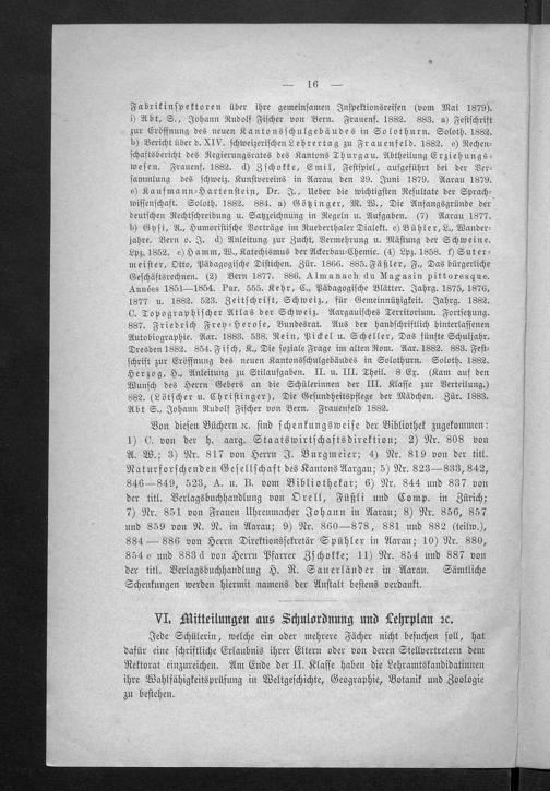 Jahresbericht über das Töchterinstitut und Lehrerinnenseminar in Aarau
