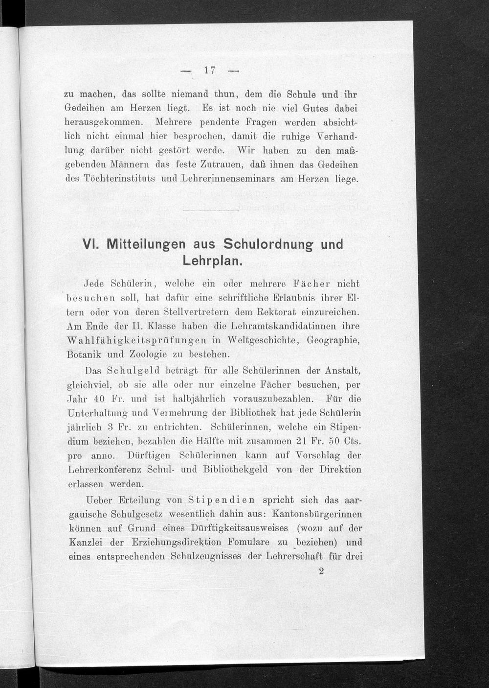 Jahresbericht über das Töchterinstitut und Lehrerinnenseminar in Aarau