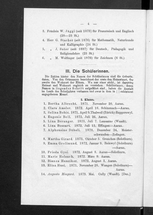 Jahresbericht über das Töchterinstitut und Lehrerinnenseminar in Aarau