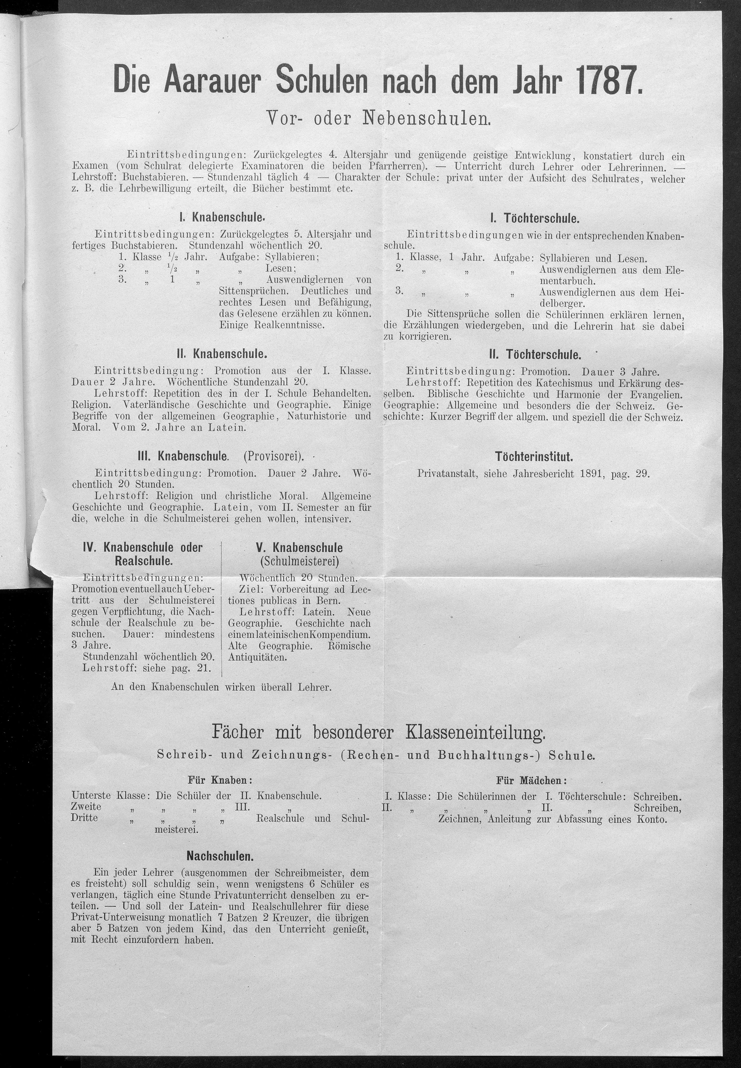 Jahresbericht über das Töchterinstitut und Lehrerinnenseminar in Aarau