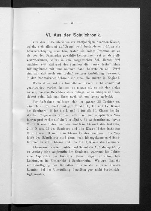 Jahresbericht über das Töchterinstitut und Lehrerinnenseminar in Aarau