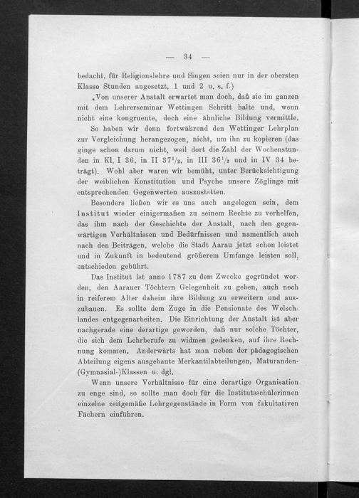 Jahresbericht über das Töchterinstitut und Lehrerinnenseminar in Aarau