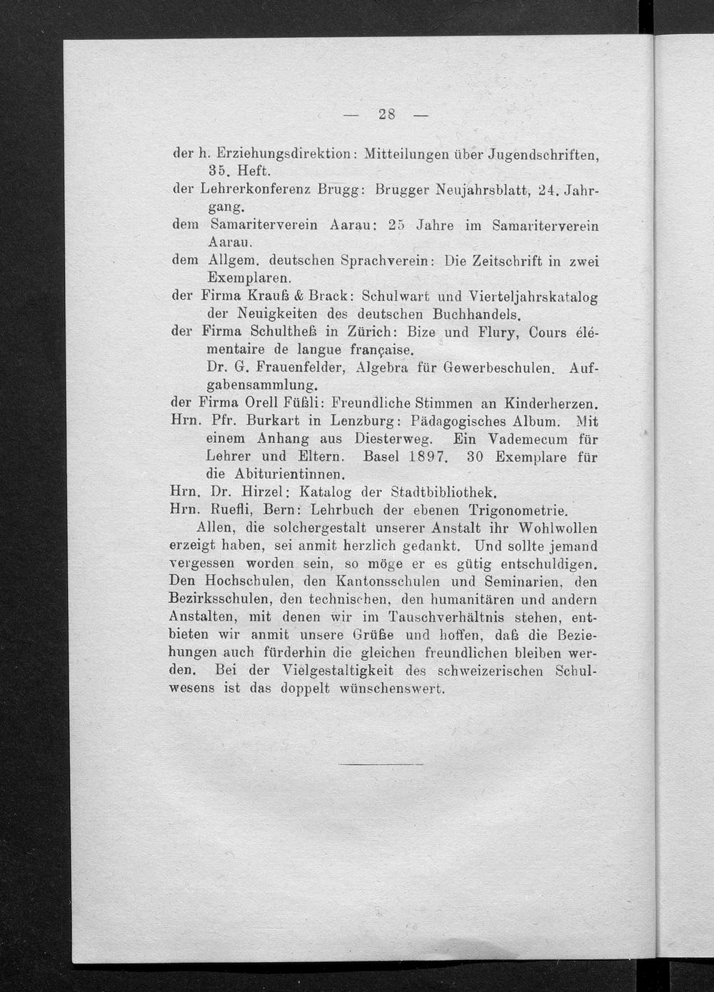 Jahresbericht über das Töchterinstitut und Lehrerinnenseminar in Aarau
