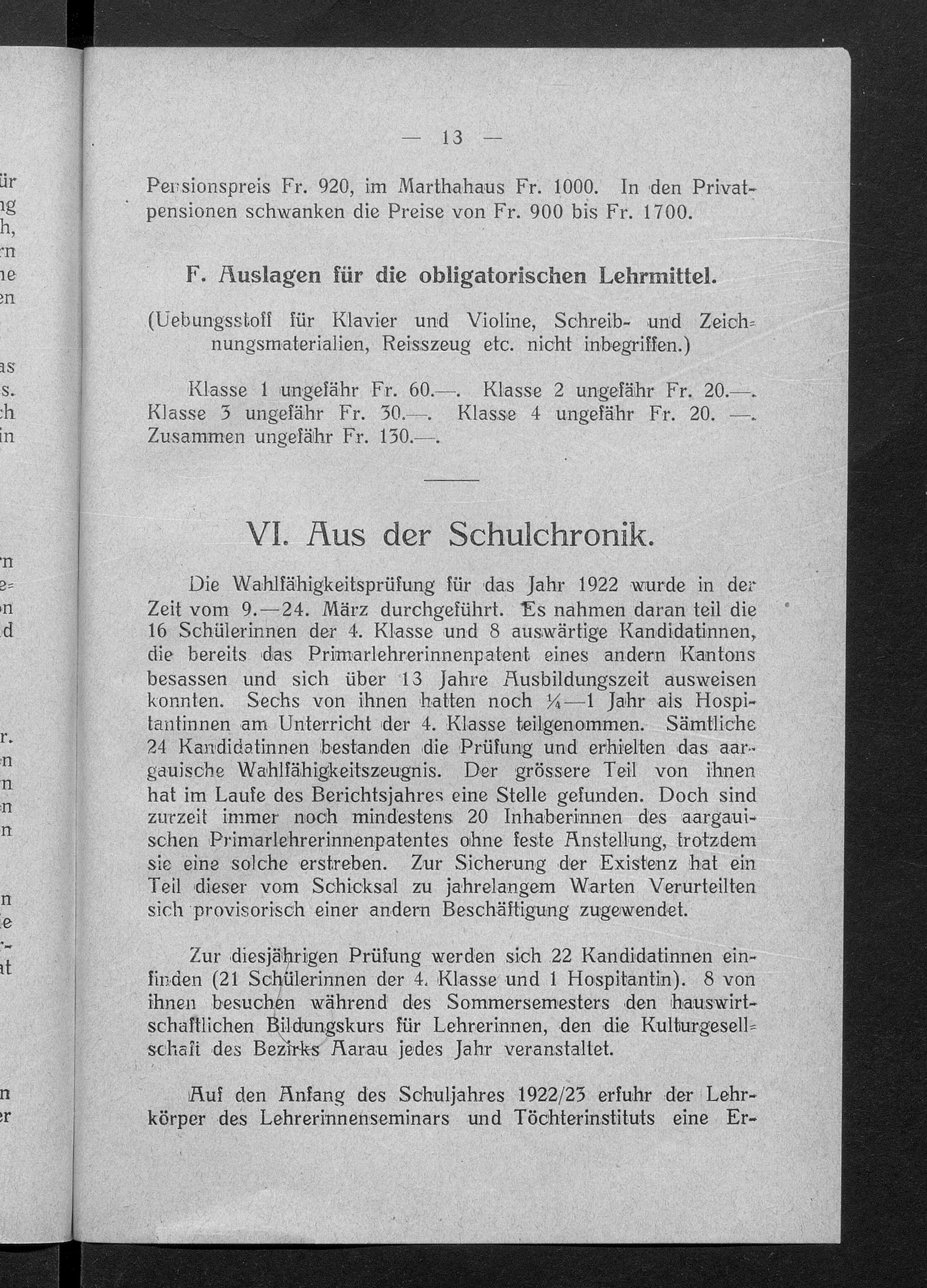 Jahresbericht über das Töchterinstitut und Lehrerinnenseminar in Aarau