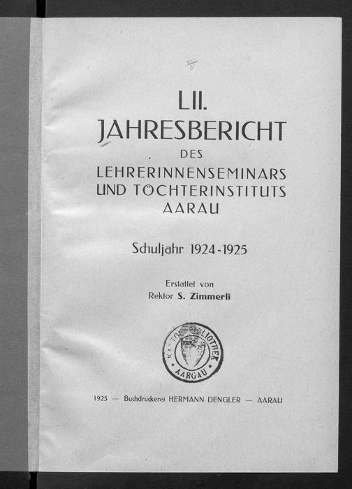 Jahresbericht über das Töchterinstitut und Lehrerinnenseminar in Aarau