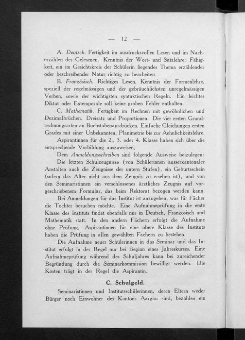 Jahresbericht über das Töchterinstitut und Lehrerinnenseminar in Aarau