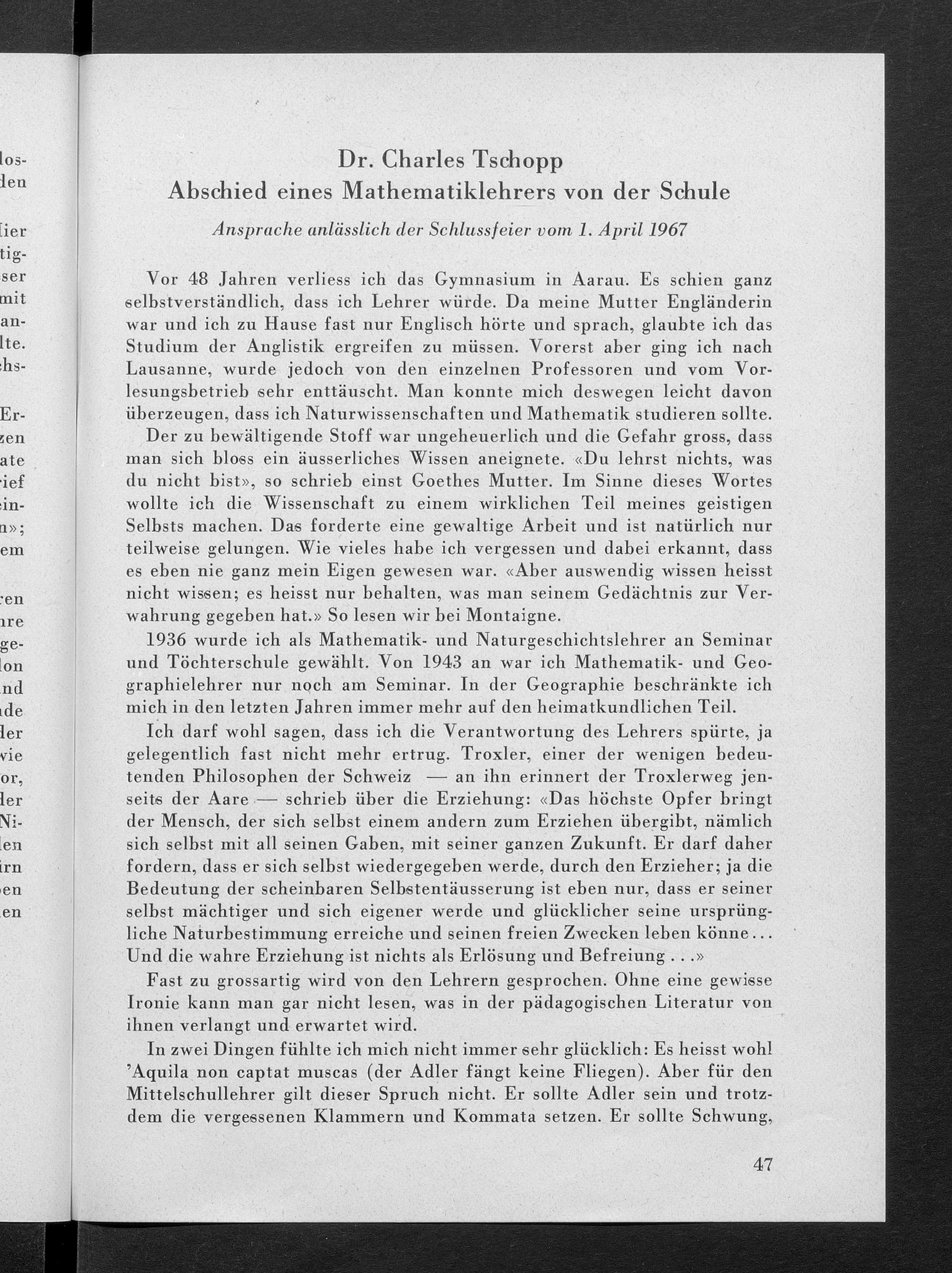 Jahresbericht über das Töchterinstitut und Lehrerinnenseminar in Aarau