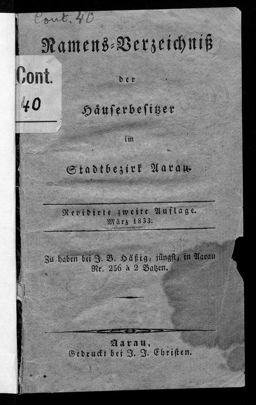 Namens-Verzeichnis der Häuserbesitzer im Stadtbezirk Aarau