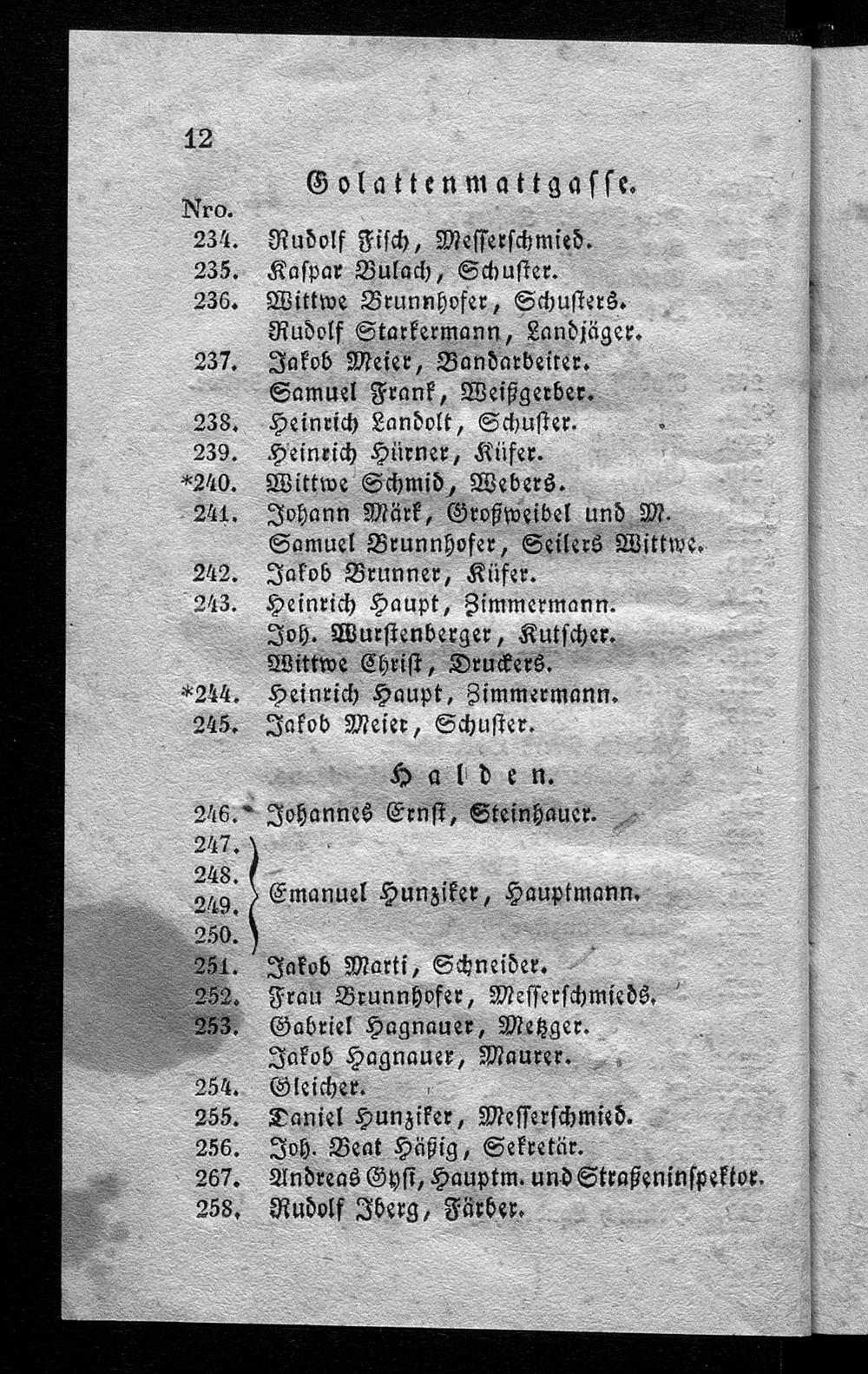 Namens-Verzeichnis der Häuserbesitzer im Stadtbezirk Aarau