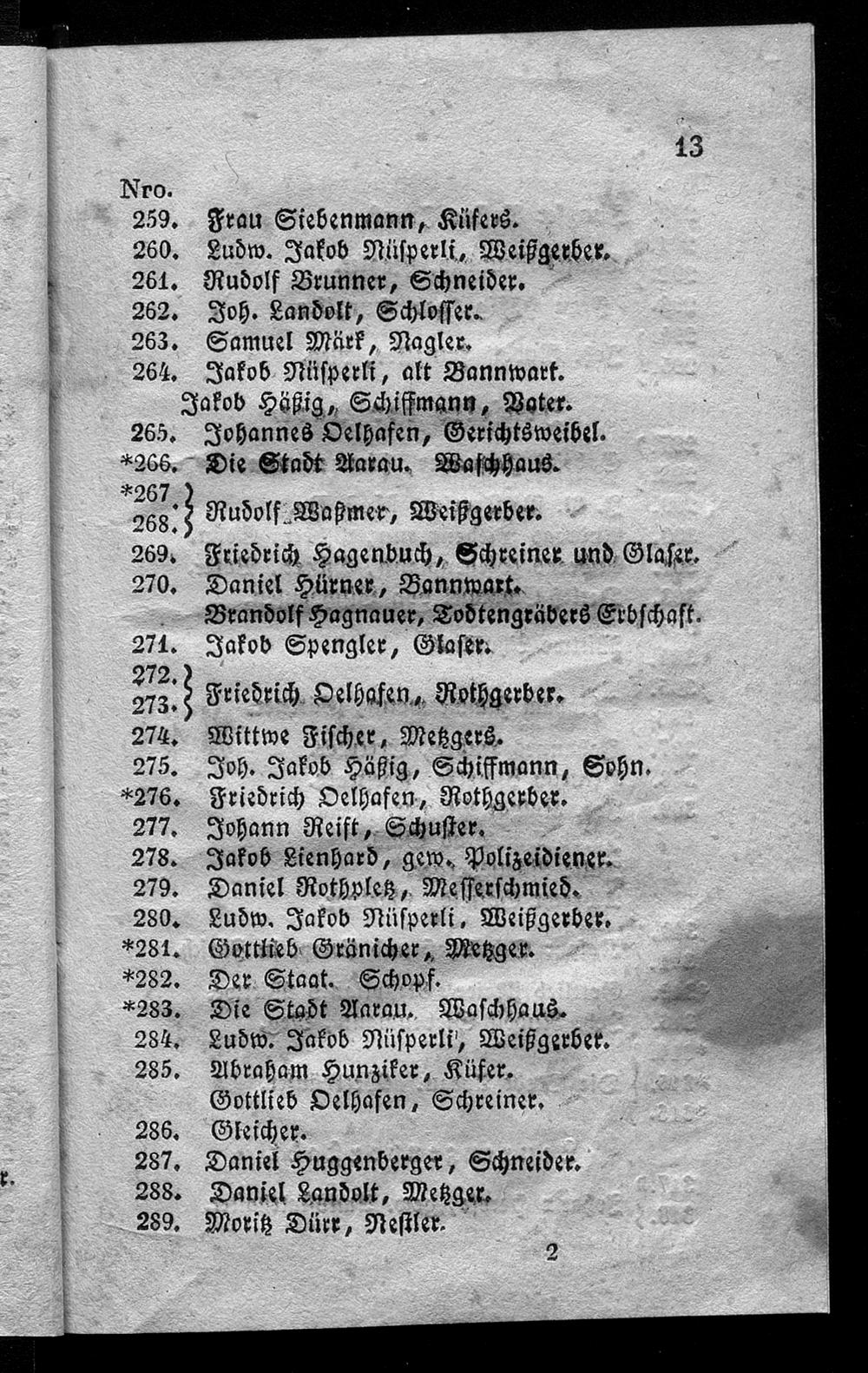 Namens-Verzeichnis der Häuserbesitzer im Stadtbezirk Aarau
