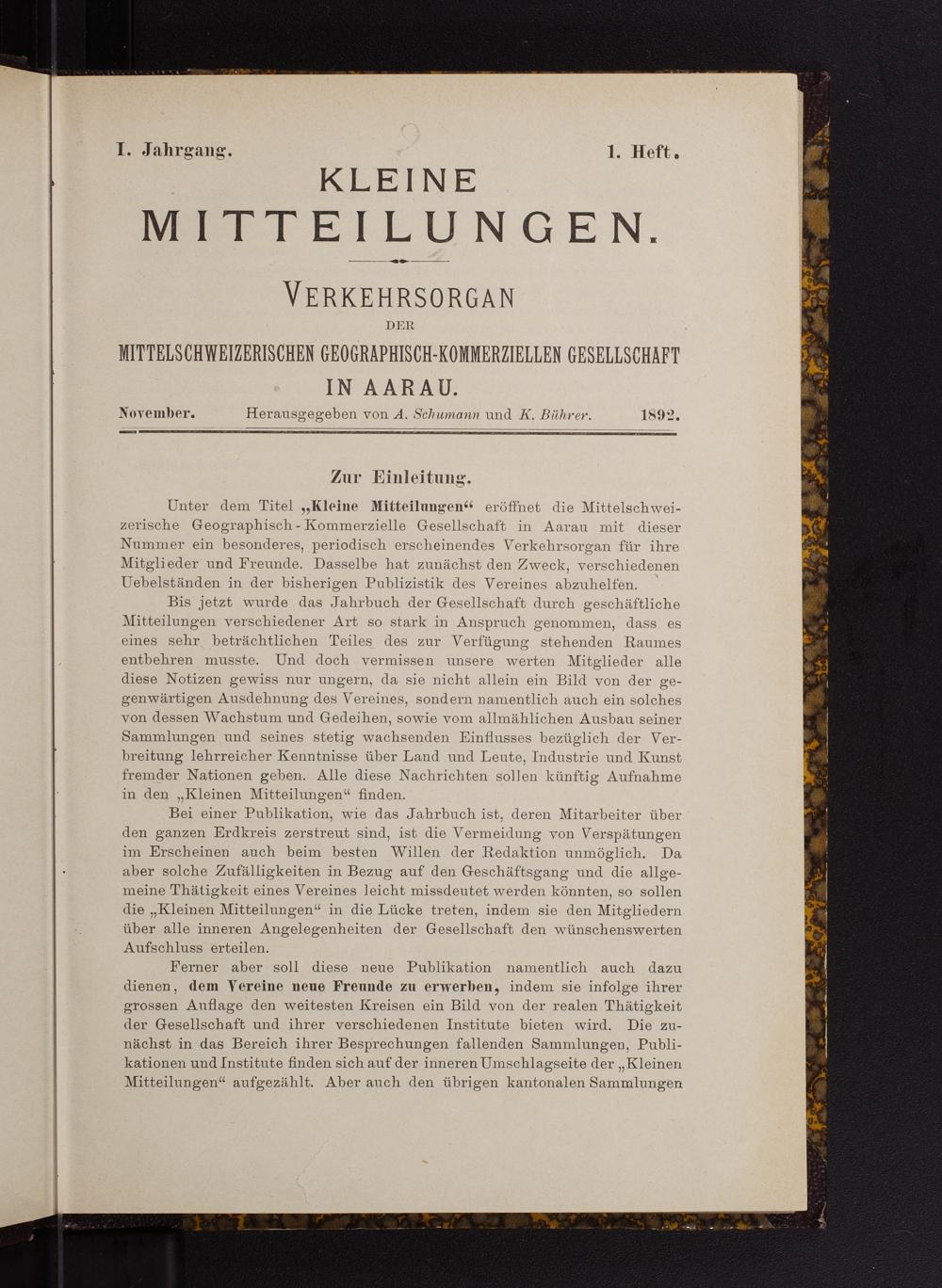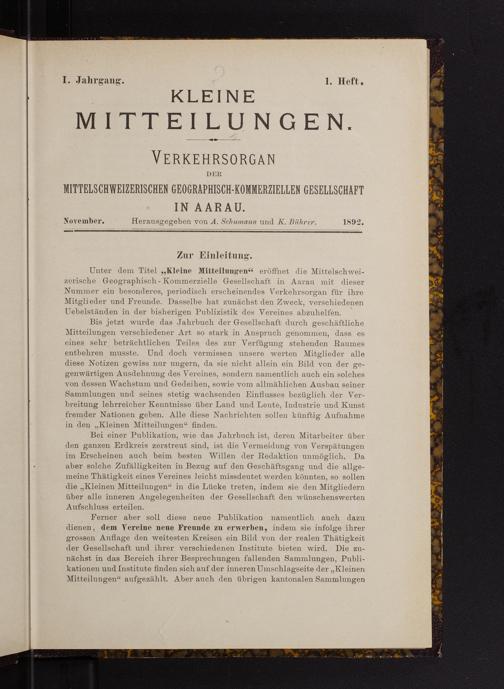 Kleine Mitteilungen / Verkehrsorgan der Mittelschweizerischen Geographisch-Kommerziellen Gesellschaft in Aarau