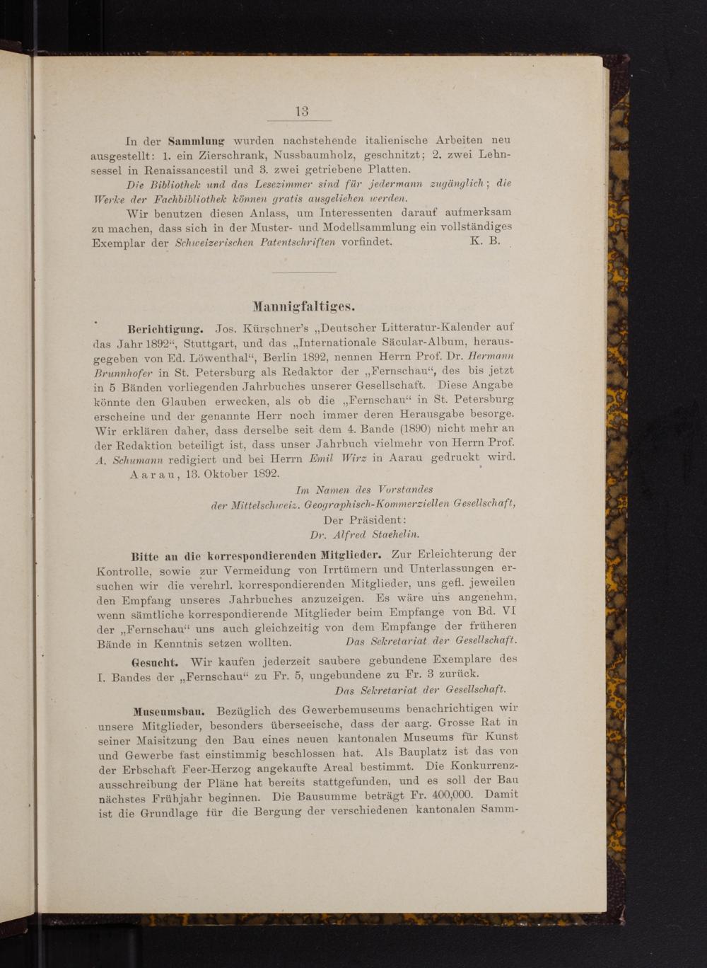 Kleine Mitteilungen / Verkehrsorgan der Mittelschweizerischen Geographisch-Kommerziellen Gesellschaft in Aarau