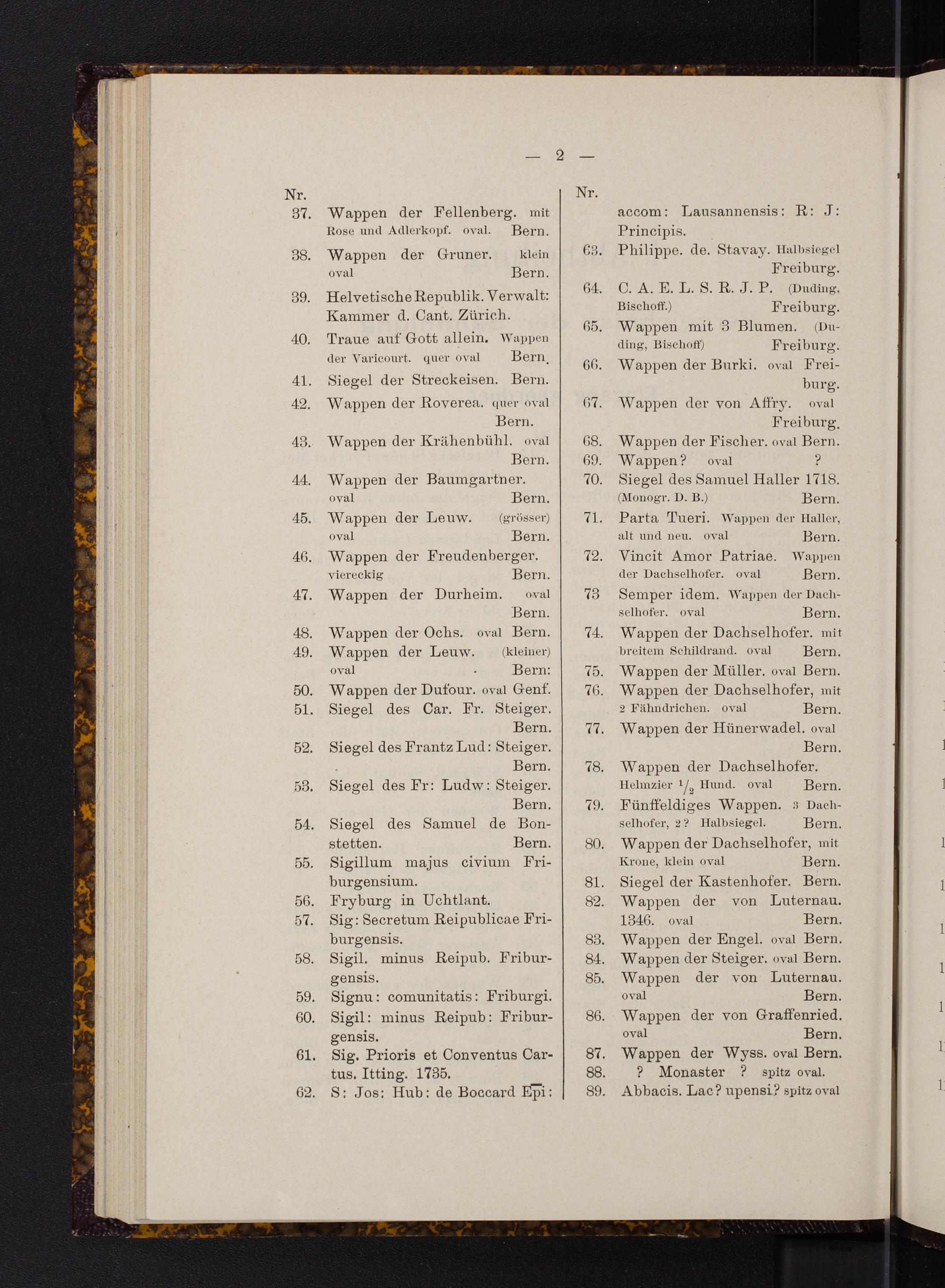 Beilage / E. von Jenner: Verzeichnis der im Ethnologischen Gewerbemuseum in Aarau befindlichen Sammlung von Siegelabdrücken