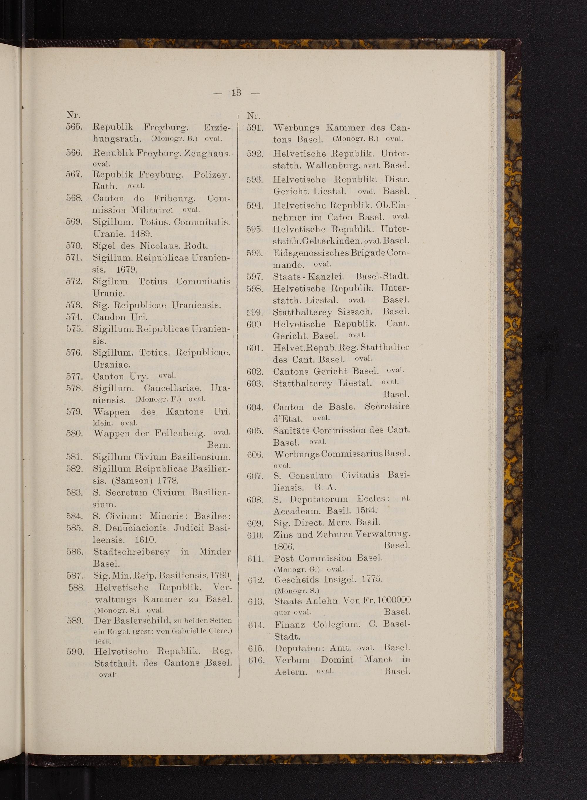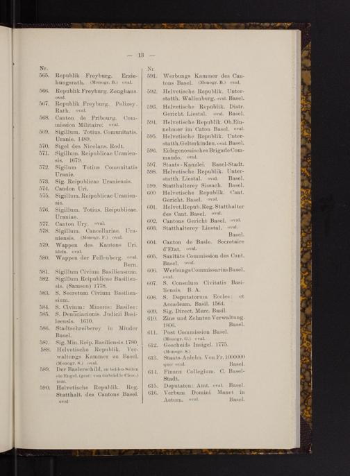 Beilage / E. von Jenner: Verzeichnis der im Ethnologischen Gewerbemuseum in Aarau befindlichen Sammlung von Siegelabdrücken