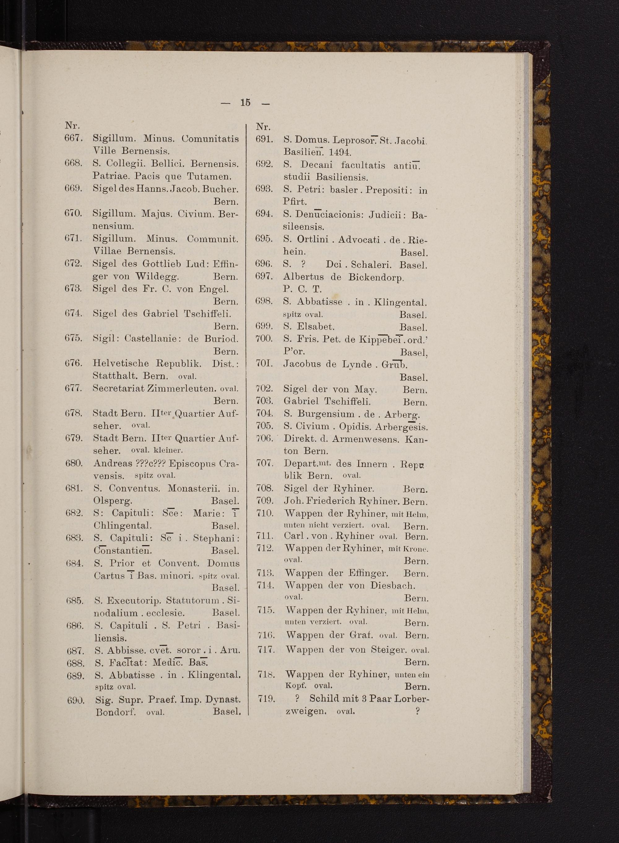Beilage / E. von Jenner: Verzeichnis der im Ethnologischen Gewerbemuseum in Aarau befindlichen Sammlung von Siegelabdrücken