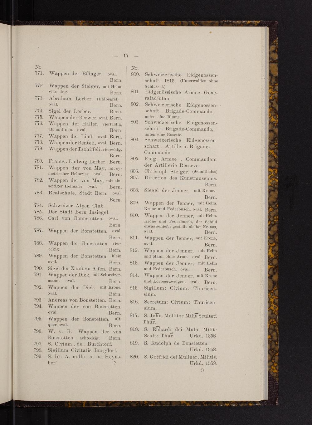 Beilage / E. von Jenner: Verzeichnis der im Ethnologischen Gewerbemuseum in Aarau befindlichen Sammlung von Siegelabdrücken
