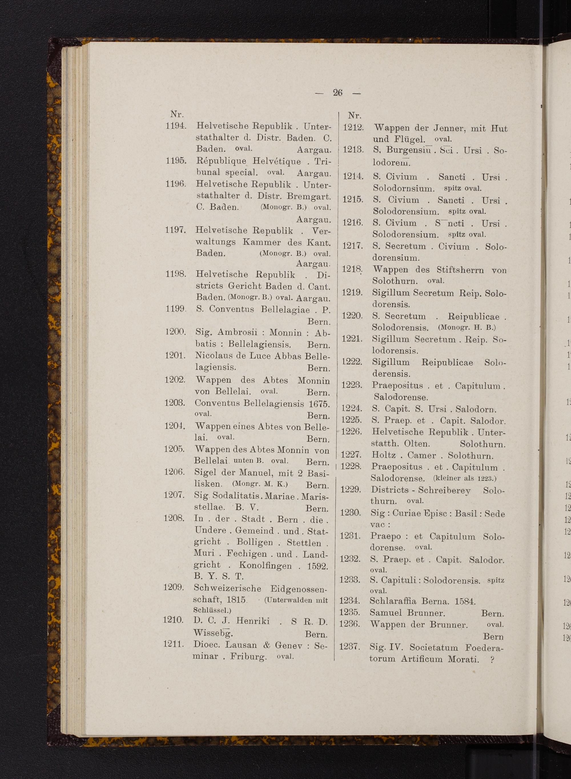 Beilage / E. von Jenner: Verzeichnis der im Ethnologischen Gewerbemuseum in Aarau befindlichen Sammlung von Siegelabdrücken