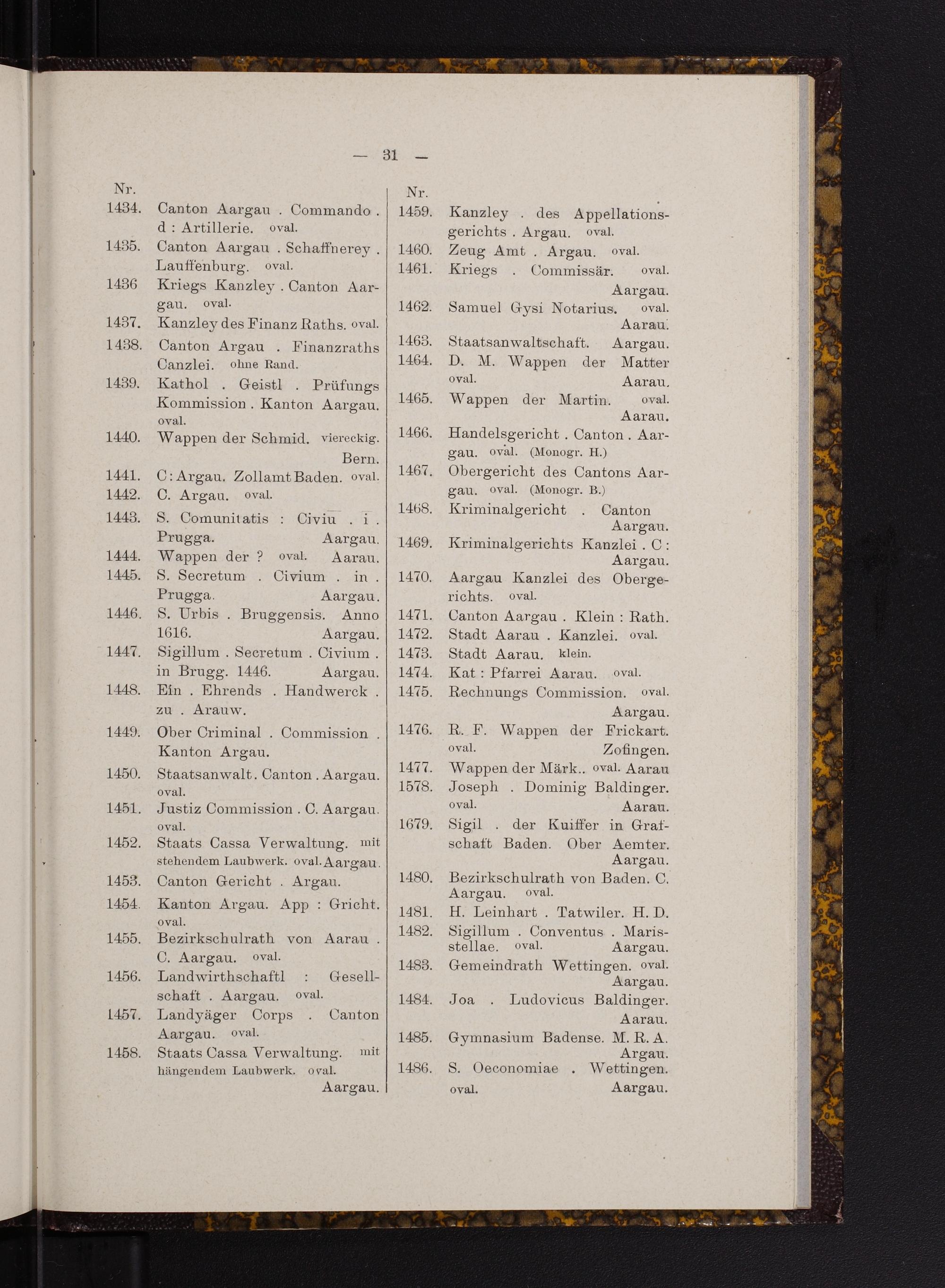 Beilage / E. von Jenner: Verzeichnis der im Ethnologischen Gewerbemuseum in Aarau befindlichen Sammlung von Siegelabdrücken