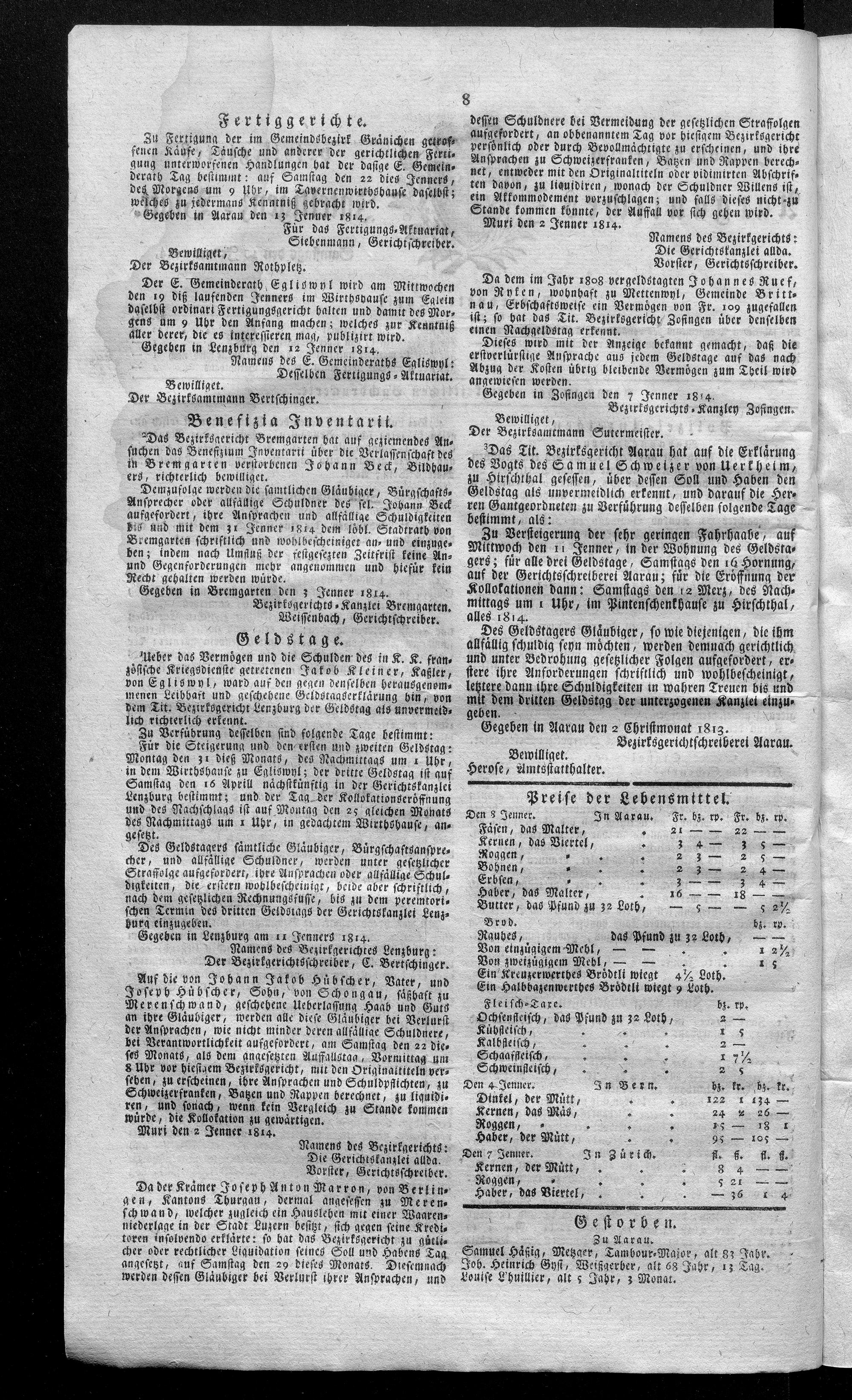 Hochobrigkeitlich privilegirtes Aargauisches Intelligenz-Blatt