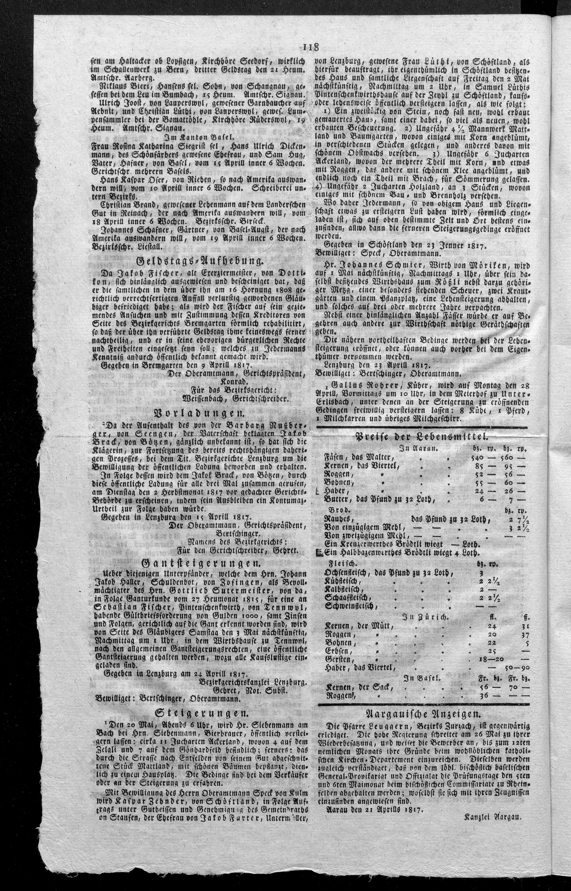 Hochobrigkeitlich privilegirtes Aargauisches Intelligenz-Blatt