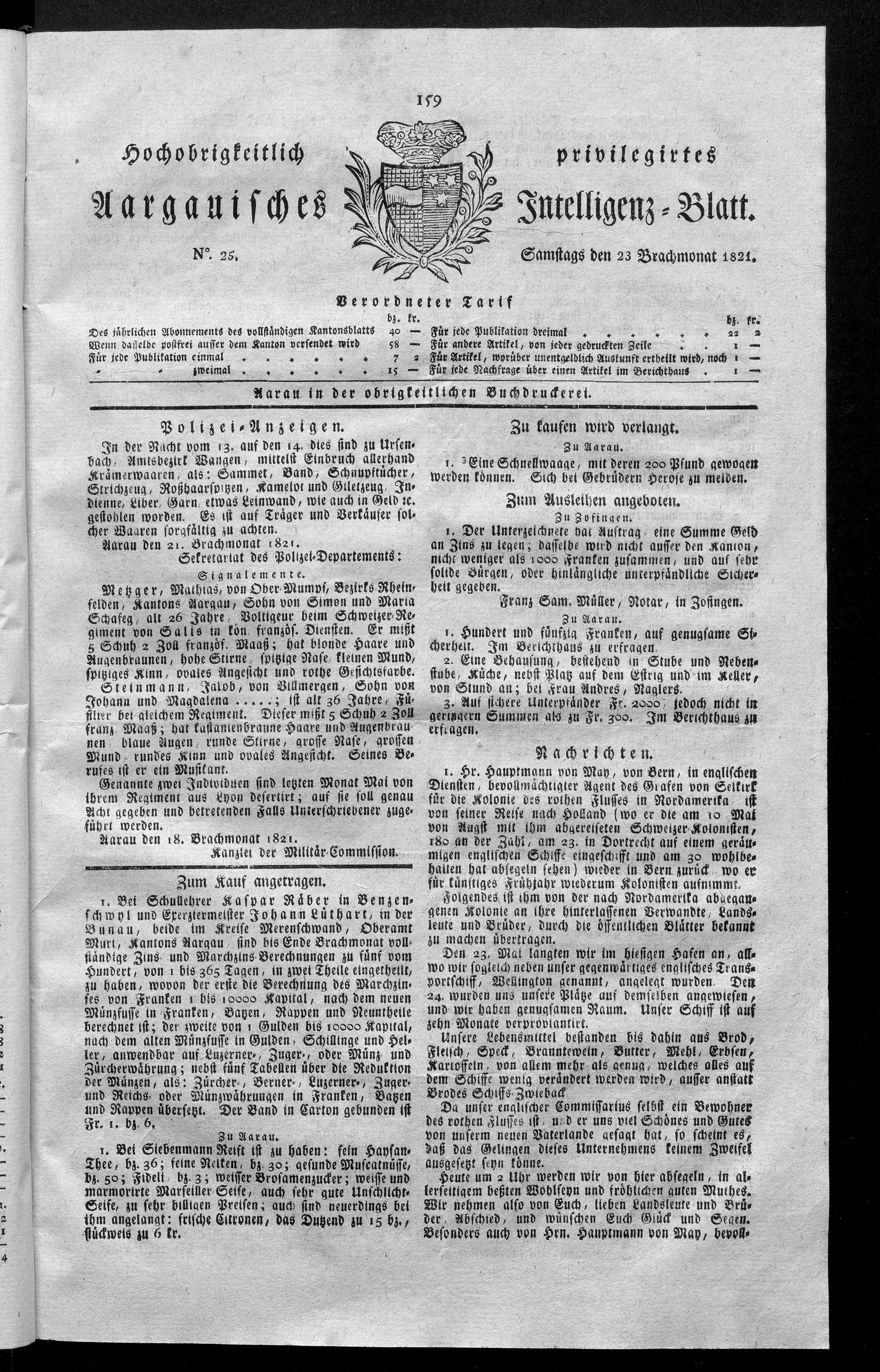 Hochobrigkeitlich privilegirtes Aargauisches Intelligenz-Blatt