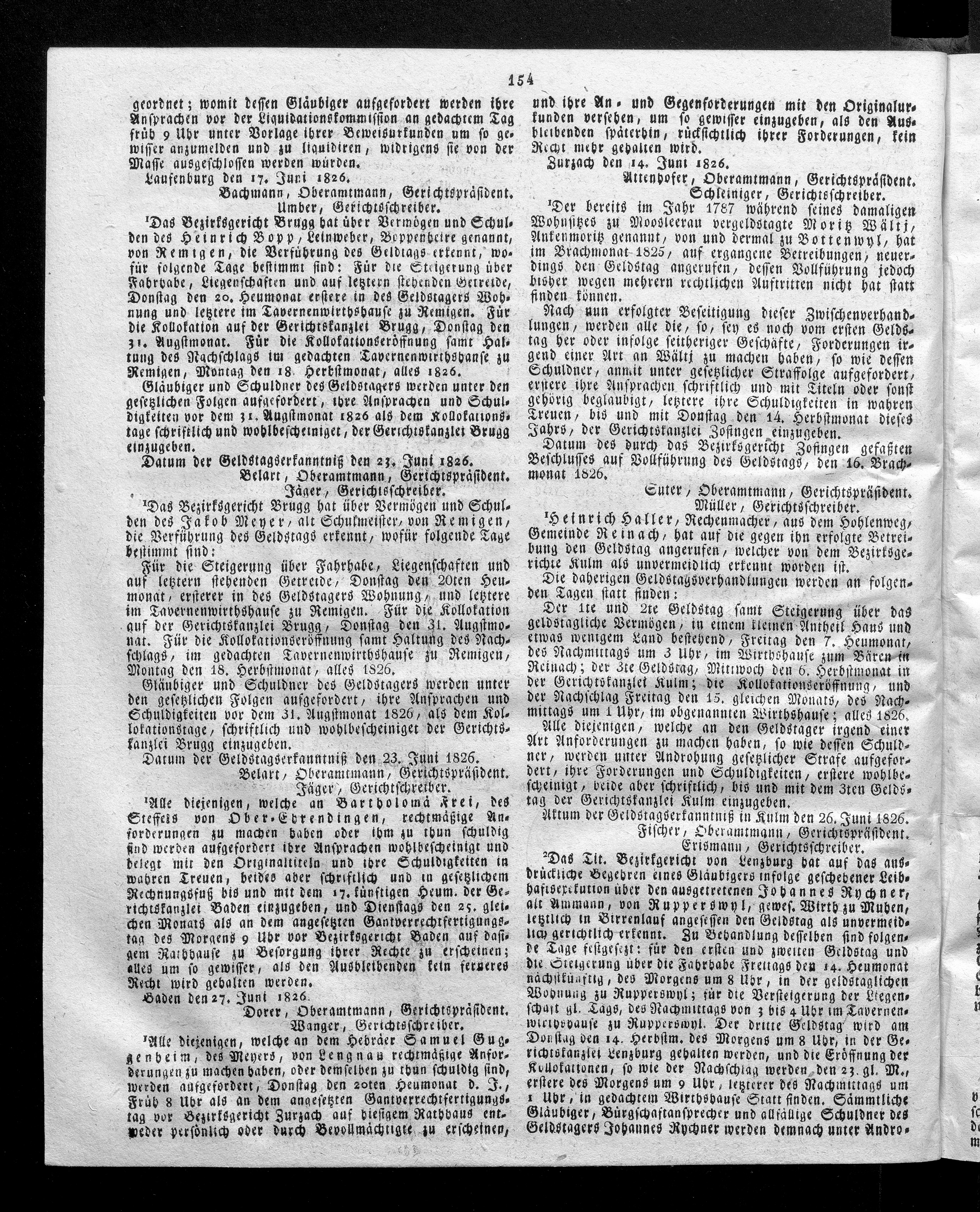 Hochobrigkeitlich privilegirtes Aargauisches Intelligenz-Blatt