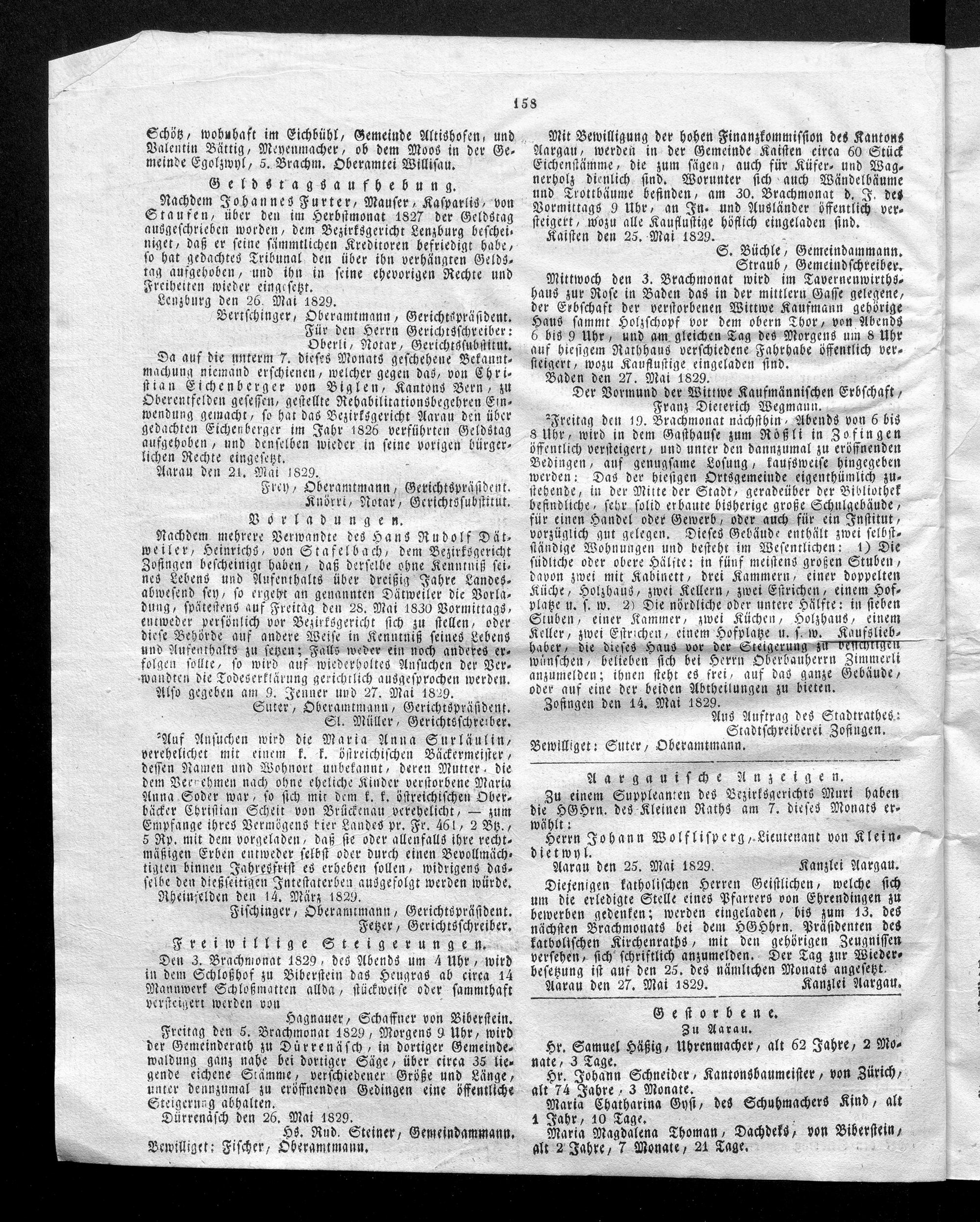 Hochobrigkeitlich privilegirtes Aargauisches Intelligenz-Blatt
