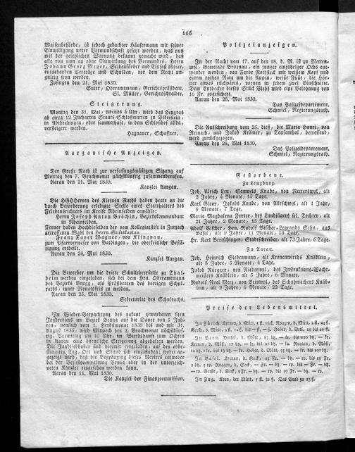 Hochobrigkeitlich privilegirtes Aargauisches Intelligenz-Blatt