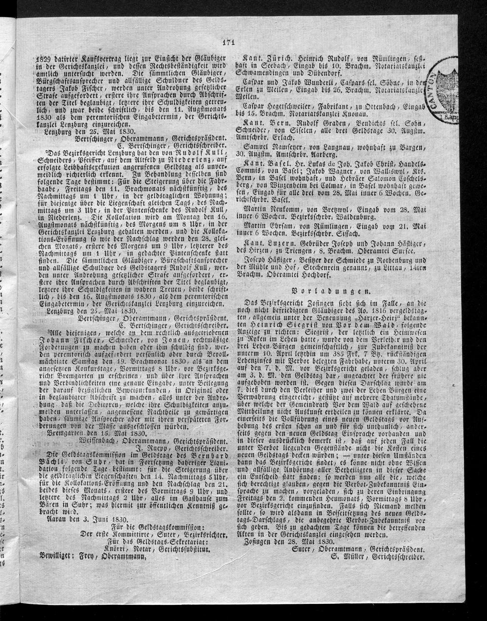 Hochobrigkeitlich privilegirtes Aargauisches Intelligenz-Blatt