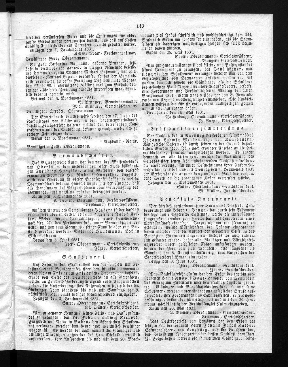 Hochobrigkeitlich privilegirtes Aargauisches Intelligenz-Blatt