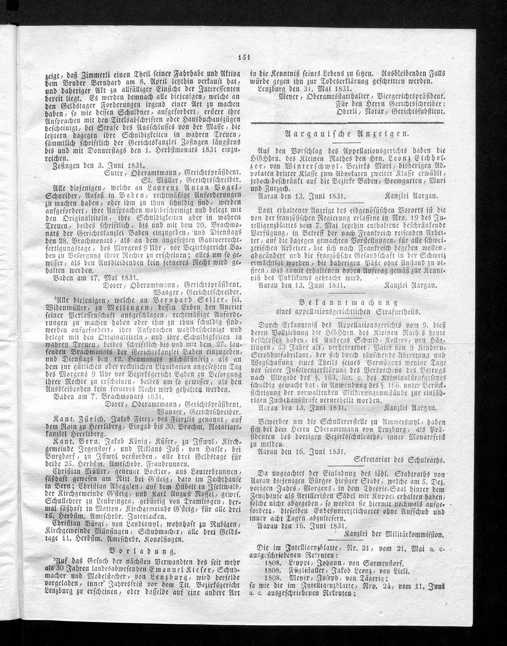Hochobrigkeitlich privilegirtes Aargauisches Intelligenz-Blatt