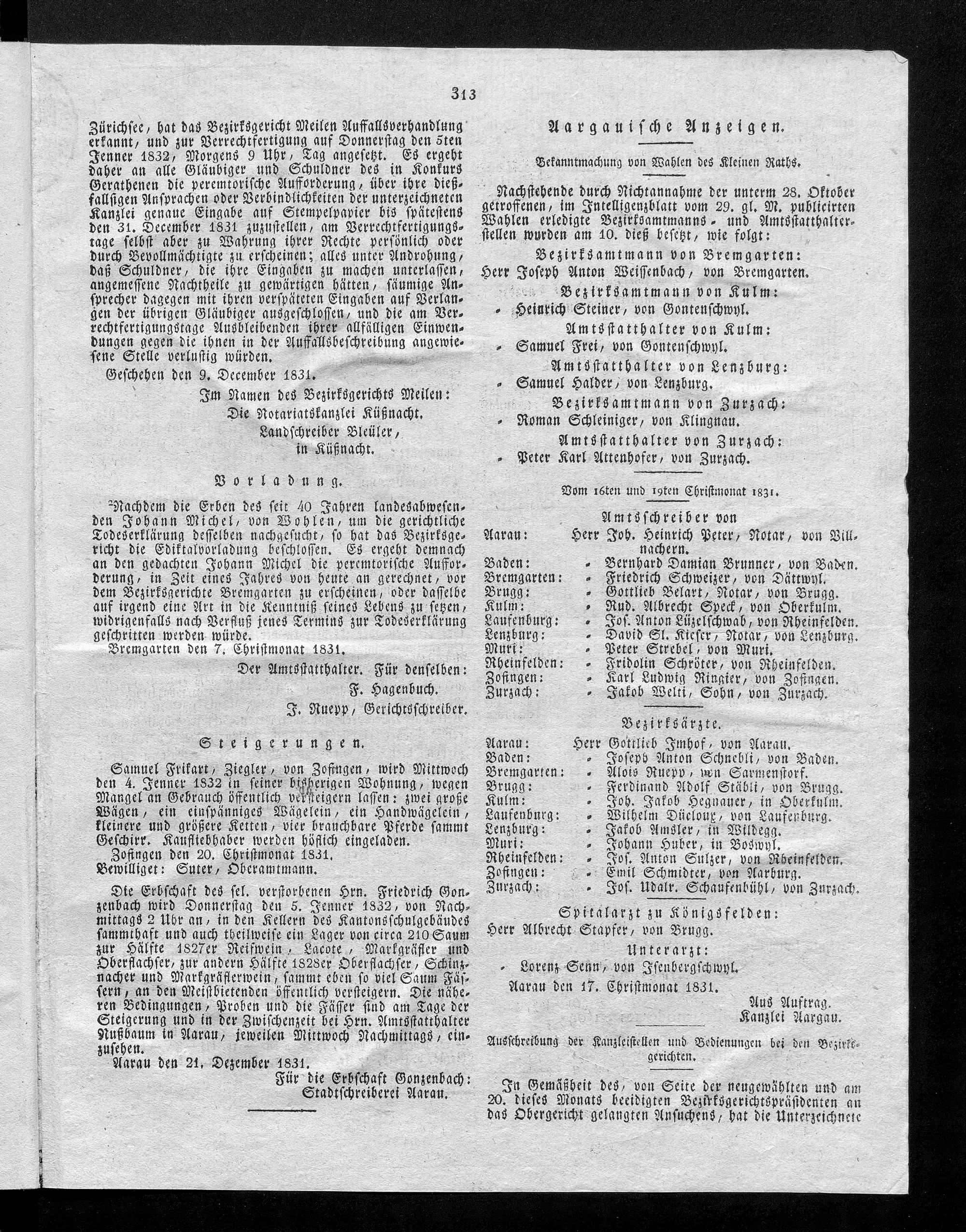 Hochobrigkeitlich privilegirtes Aargauisches Intelligenz-Blatt
