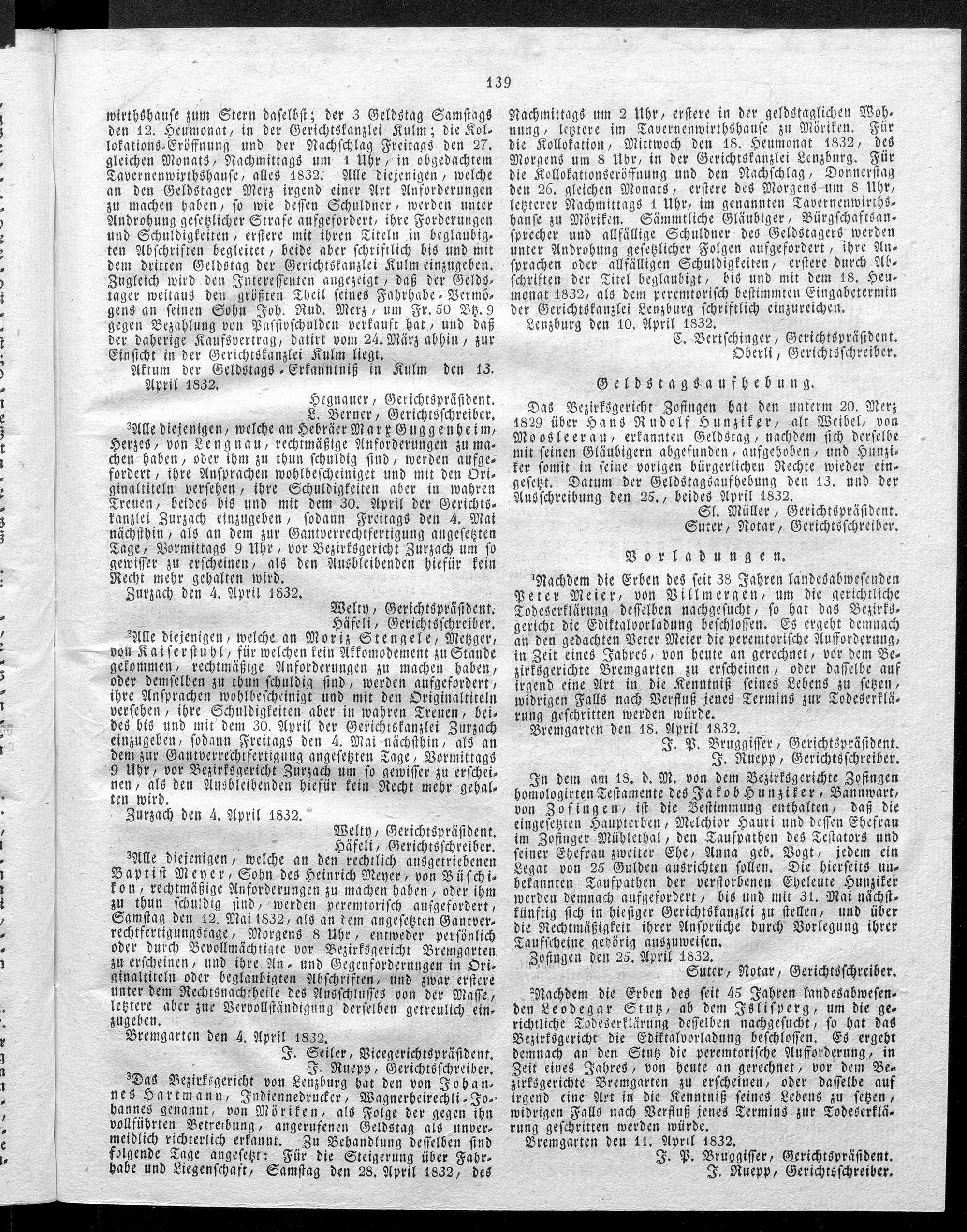 Hochobrigkeitlich privilegirtes Aargauisches Intelligenz-Blatt
