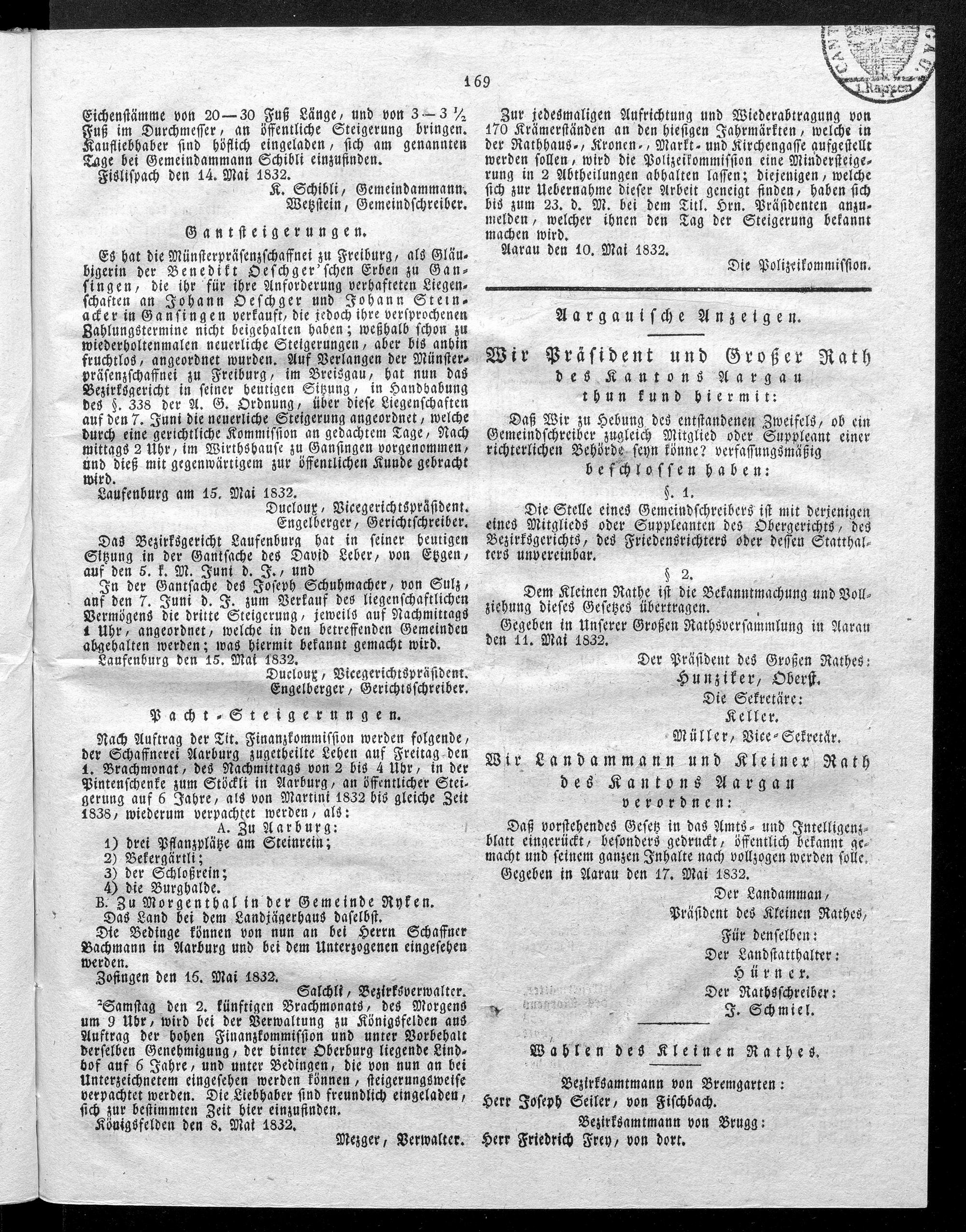Hochobrigkeitlich privilegirtes Aargauisches Intelligenz-Blatt