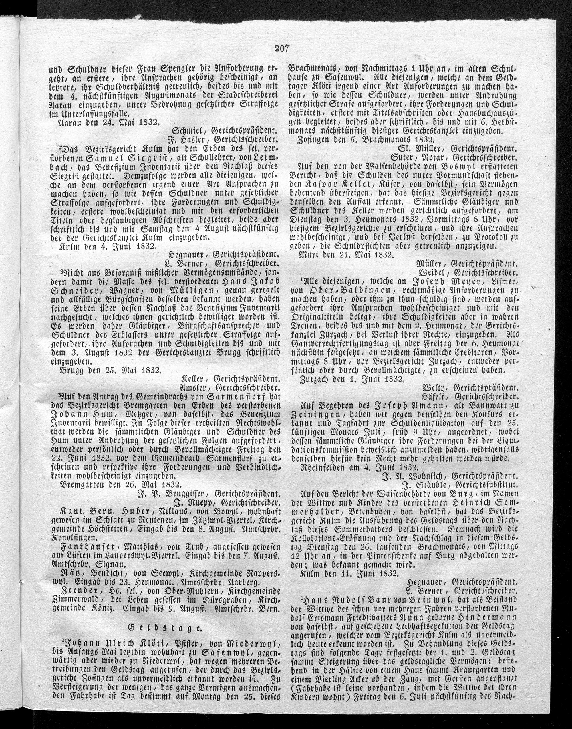 Hochobrigkeitlich privilegirtes Aargauisches Intelligenz-Blatt
