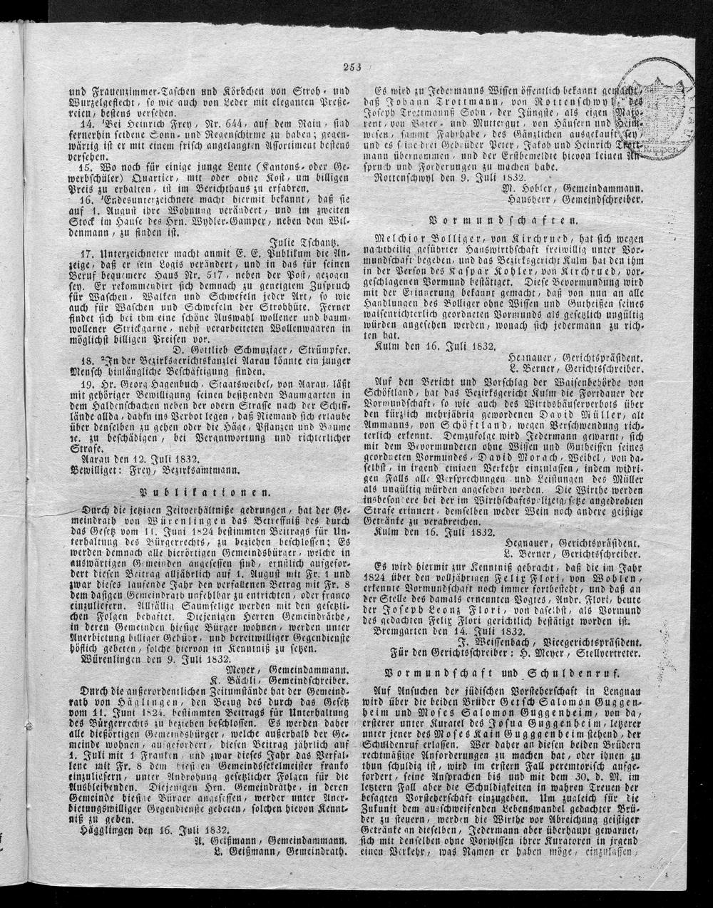Hochobrigkeitlich privilegirtes Aargauisches Intelligenz-Blatt