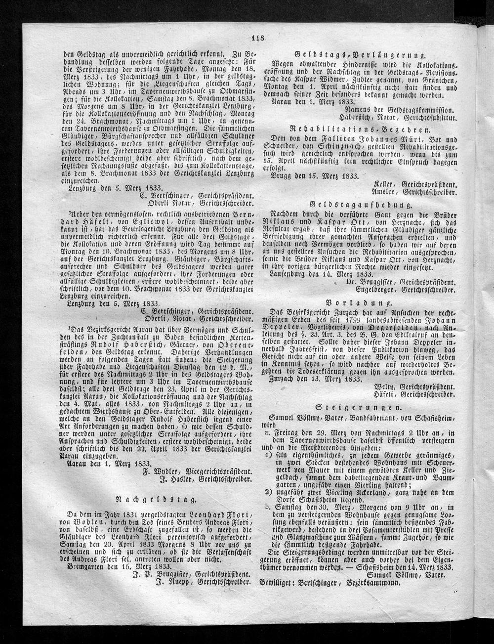 Hochobrigkeitlich privilegirtes Aargauisches Intelligenz-Blatt