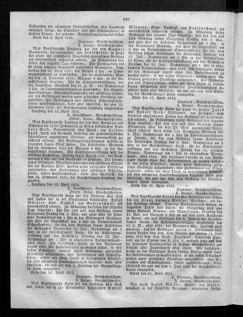 Hochobrigkeitlich privilegirtes Aargauisches Intelligenz-Blatt