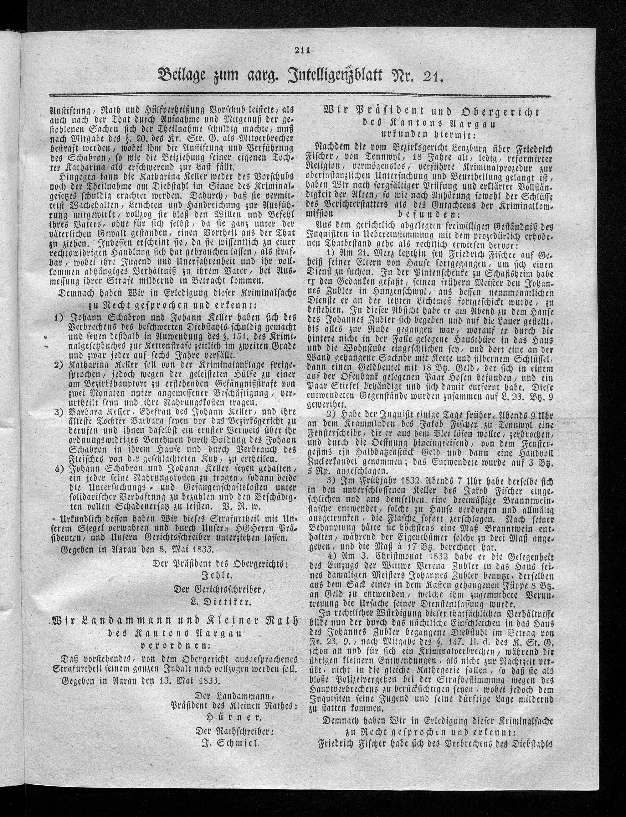 Hochobrigkeitlich privilegirtes Aargauisches Intelligenz-Blatt